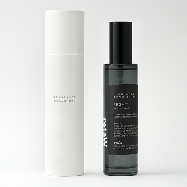 room sprayFRGMT* room spray Top: Lilac,Gardenia,Aniseed Middle: Jasmine,Orange Flower,Gardenia Last: Heliotrope,Vanilla,Patchouli Instantly transform your surroundings with fragrance. The room spray arrives in a clear grey-tinted glass bottle with a sleek black cap and label, encased in cylindrical packaging, also making for a luxurious gift. *Avoid direct contact with skin, clothing, or furniture. Flammable. Do not store in high temperatures. Keep out of reach of children. room sprayFRGMT* FRGMT* family Base notes of patchouli and vanilla, balanced with lily and tart cassis.The distinctive, rich composition leaves a lingering impression, slightly sharp and pleasantly mysterious. *Fragrance exclusively made for Fragment Design. solid perfumeFRGMT* ¥2,600 add to cart fabric sprayFRGMT* ¥3,380 add to cart candleFRGMT* ¥9,100 add to cart desktop 25mlFRGMT* ¥4,550 add to cart car tagFRGMT* ¥2,080 add to cart room spray collection room sprayBARNEY* ¥5,460 add to cart room sprayLYN* ¥5,460 add to cart room sprayALLEN* ¥5,980 add to cart room sprayEVELYN* ¥5,980 add to cart room sprayHARAJUKU* ¥5,980 add to cart room sprayLOEB* ¥5,980 add to cart
